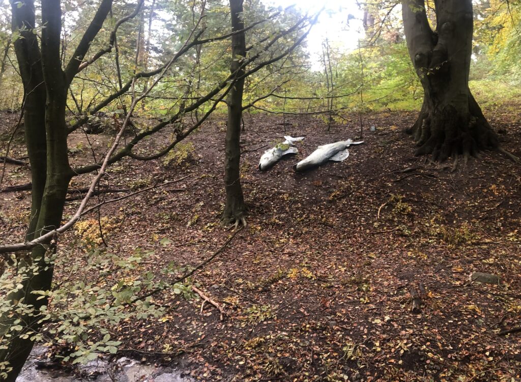 Leftovers Papier marché, acryllic paint, ca. 50 x 100 x 300 cm. Mindeparken Aarhus Sep – Oct 2023.